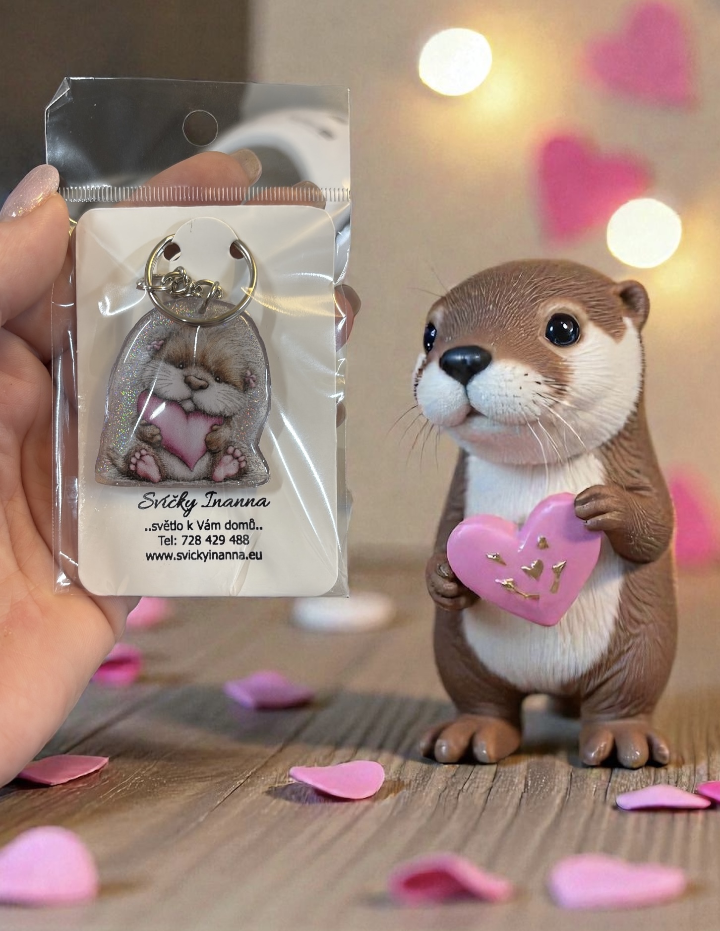Klíčenka z UV pryskyřice - zamilovaná vydra